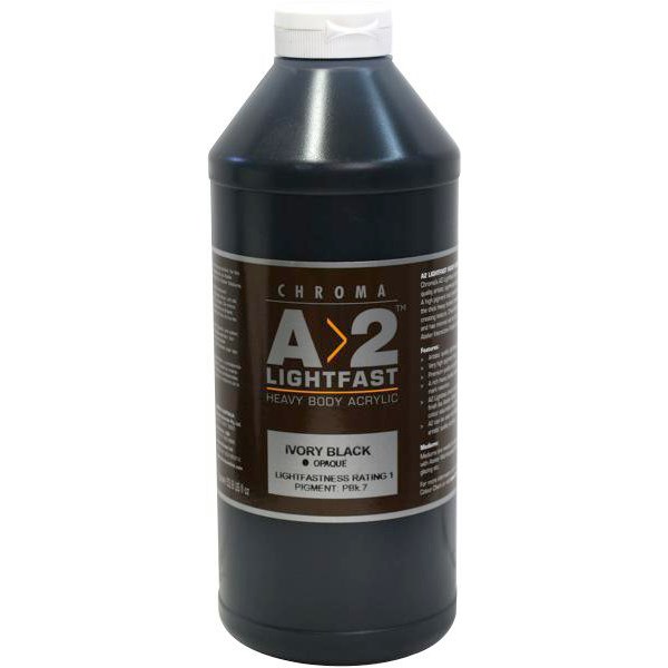 A2 Student Acrylic Paint in Ivory Black is a lightfast, heavy bodied acrylic paint with a high pigment load, ideal for the serious art student. A2 paint has been designed to allow art students to develop their painting skills and creativity with a paint that works like a professional grade artist's paint. It has excellent brush mark retention and dries to an attractive low gloss finish. Compatible with a variety of painting mediums such as impasto gel and texture paste. Easy soap and water clean up. Suitable for use on art board, cartridge paper, canvas board and more.