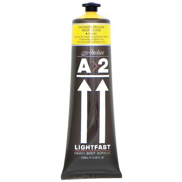 A2 Student Acrylic Paint in Cadmium Medium Yellow is a lightfast, heavy bodied acrylic paint with a high pigment load, ideal for the serious art student. A2 paint has been designed to allow art students to develop their painting skills and creativity with a paint that works like a professional grade artist's paint. It has excellent brush mark retention and dries to an attractive low gloss finish. Compatible with a variety of painting mediums such as impasto gel and texture paste. Easy soap and water clean up. Suitable for use on art board, cartridge paper, canvas board and more.