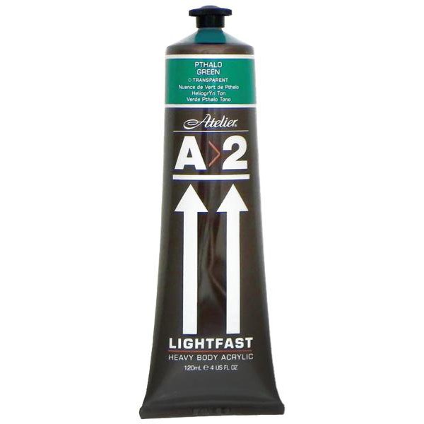 A2 Student Acrylic Paint in Pthalo Green Hue is a lightfast, heavy bodied acrylic paint with a high pigment load, ideal for the serious art student. A2 paint has been designed to allow art students to develop their painting skills and creativity with a paint that works like a professional grade artist's paint. It has excellent brush mark retention and dries to an attractive low gloss finish. Compatible with a variety of painting mediums such as impasto gel and texture paste. Easy soap and water clean up. Suitable for use on art board, cartridge paper, canvas board and more.