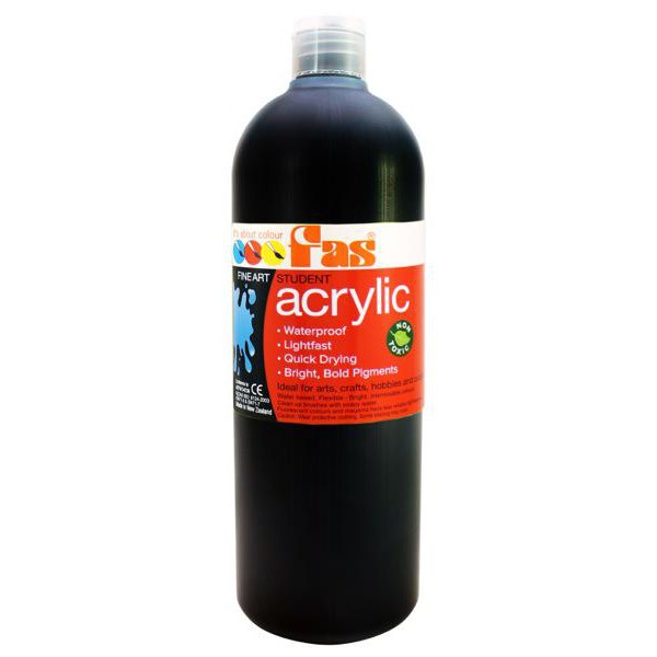 Fas Black Student Acrylic Paint is a non-toxic, fast drying and versatile acrylic paint suitable for home and school use. The paint has vibrant pigments for intense colour and can be mixed together easily. Compatible with a variety of painting mediums such as Gesso, Texture Paste, Impasto Gel and more. Suitable for use with paper, card, canvas, wood, fabric, plastic and more. Easy soap and water clean up.