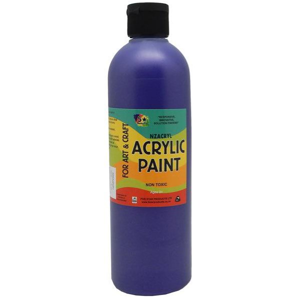Five Star NZACRYL Metallic Purple paint is ideal for use in both the home and at school. The paint is non-toxic, water resistant, light fast and has a smooth consistency that provides good coverage with bold, bright colour. It is versatile and can be used with a variety of painting mediums such as Texture Paste, Impasto Gel, Moulding Paste and more, making it ideal for a range of creative painting projects. Suitable for use with standard & wet strength cartridge paper, newsprint, canvas card & board, acrylic paper and more. Cleans up easily with soap & water.