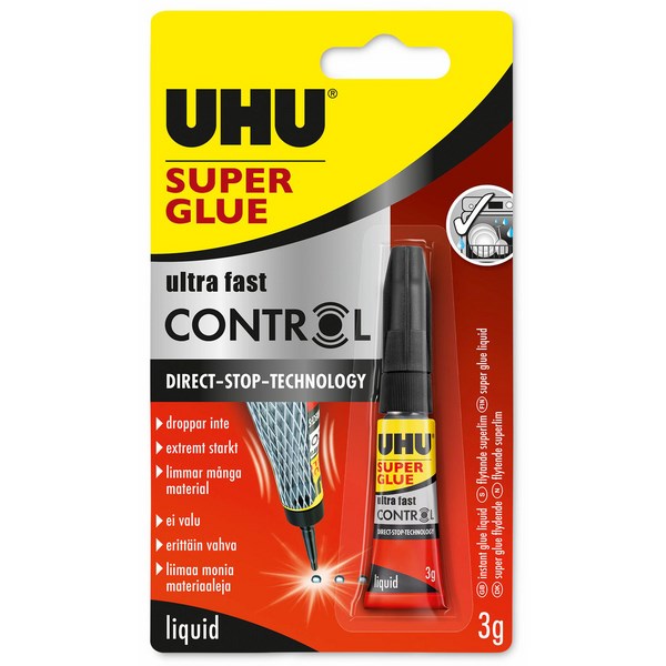 This UHU Liquid Super Glue is extremely strong and fast drying. The liquid formula is easy to spread and will flow into the smallest corners and joints. This glue is suitable for gluing various plastics, wood, china, metal, ceramics and rubber.