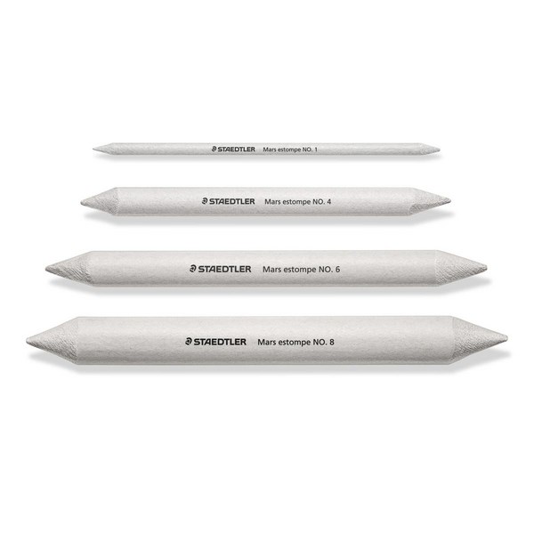These Staedtler Design Journey Blending Stumps are a great accessory to have in your art tool kit. Use them to smudge, shade and blend a variety of artistic materials such as charcoal, crayons, pastels and chalk. The stumps can be repointed with sandpaper. This pack contains four stumps.