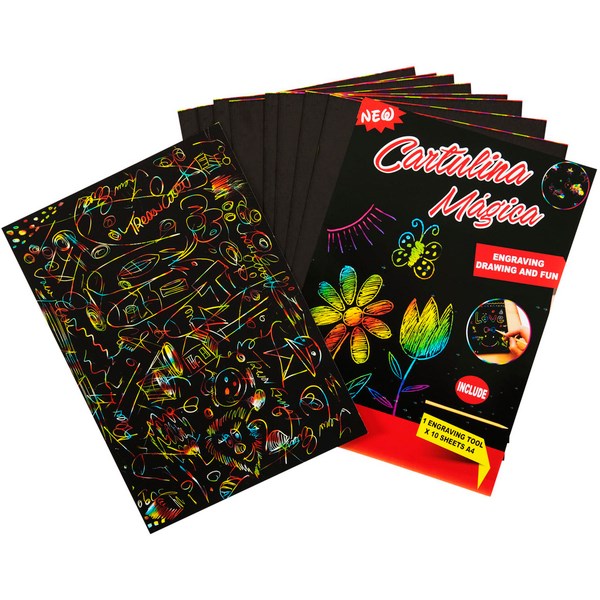 Get creative with this awesome Cartulina Magica Art & Craft Engraving Scratchboard. It comes in a pack of 10 A4 sheets and allows you to create vibrant designs and works of art. Simply scratch the black coating and reveal multi-coloured cardboard with a plastic stylus. These are great to have in the classroom or at home to keep the kids entertained and can be used to write letters, making cards or for drawing.