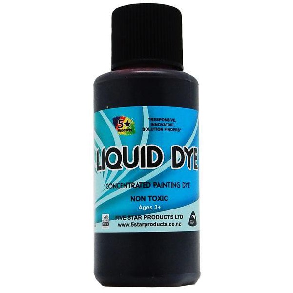Five Star Liquid Dye is a concentrated water soluble dye in liquid form which is ready to be diluted to the desired depth of tone. It can be used for screen printing when added to Cellulose Paste or All Purpose Paste. Note: The image shown is the concentrated colour.