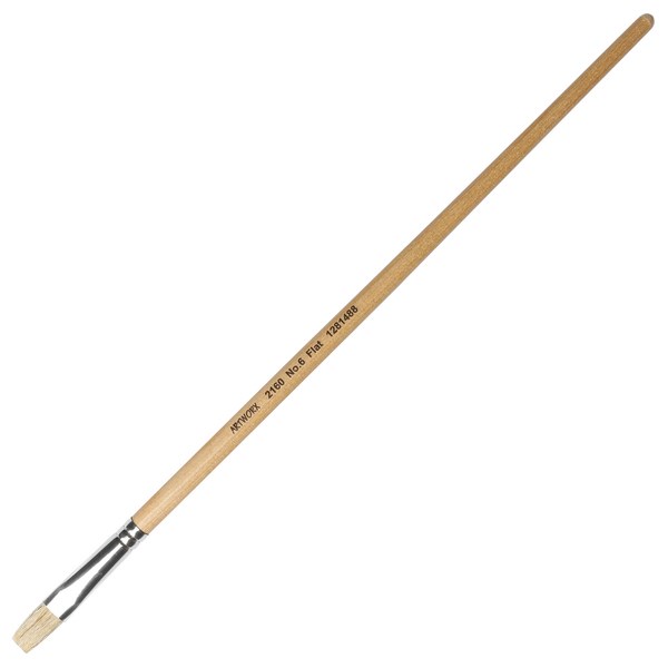Artworx 2160 Series Flat Paint Brushes are multipurpose brushes ideal for covering large areas. These brushes have hog hair bristles and long handles featuring lacquered natural wood. Great for use with a variety of mediums including tempera paint, oil paint, acrylic paint, gouache and mixed media.