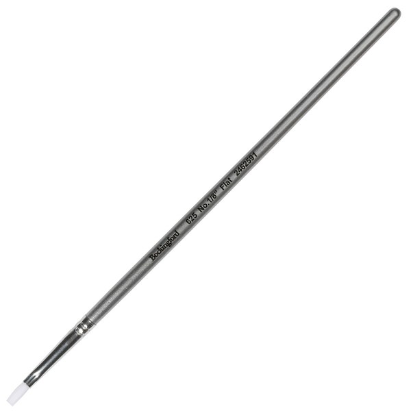•A flat paint brush with taklon bristles and a metallic silver handle