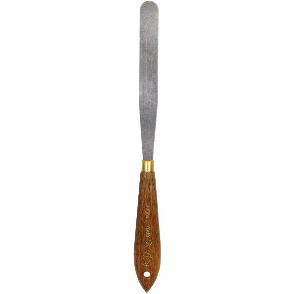 Mix and apply paint with ease using this wooden handled palette knife measuring 228mm. It features a polished steel blade and a hard wood handle for durability. The steel make of the blade ensures less wastage of paint, which usually gets trapped in paint brush bristles. This palette knife is a handy tool for artists, painters and art students.