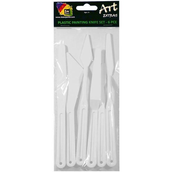 These Plastic Palette Knives are an economical way to add colour and texture to your works of art. Each knife is made of one-piece moulded plastic for excellent durability, with plastic construction making them safer to use than metal knives. Ideal for use by artists, painters and students in art classes, studios and at home. The pack contains six palette knives of assorted shapes to achieve a wide variety of creative texturing and detailing.