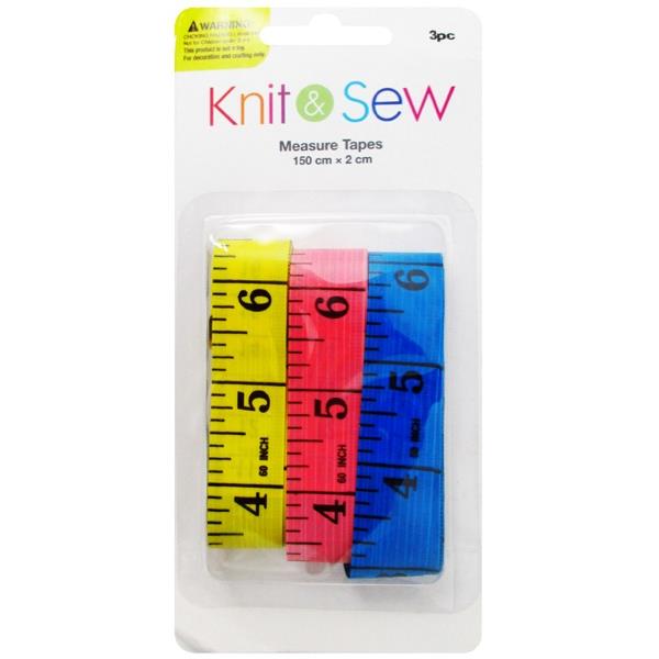 These Knit & Sew Tape Measures are made from quality fibreglass, ensuring they won't stretch & will always give accurate measurements. They have both metric & imperial measurements allowing for quick conversions of measurements. These tapes are an essential for any home sewer or dressmaker & the bright colours allow them to be easily seen on any colour fabric. The flexible nature of the tapes makes the great for measuring unusually shaped or curved items & lets them be easily rolled up when not in use.