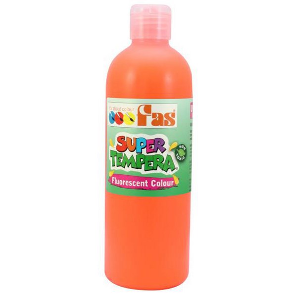 Fas Super Tempera Fluoro Orange Poster Paint is an economical water based paint with a long shelf life. This Tempera paint produces bright, bold, smooth colour that dries with an even opaque matt finish. It can be mixed with a variety of painting mediums such as impasto gel, texture paste, gel extender, moulding paste and more, making it an easy to use and very versatile paint. Cleans up easily with soap and water. Suitable for use on lightweight card, cartridge paper and newsprint.