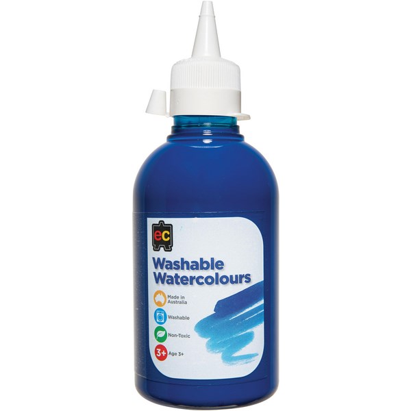 Get creative with EC Blue Watercolour Paint. This paint is non-toxic, has rich colour pigments for bold bright colour and can be intermixed. EC watercolour paint is versatile and be used for watercolour painting or as a craft dye or tinting pigment.The paint can be applied using brushes, spray bottles, sponges or droppers, making this an ideal choice for your next creative arts & craft project. Suitable for use on artists pads, watercolour pads, cardboard, paper, canvas and more. Cleans up easily with soap and water.