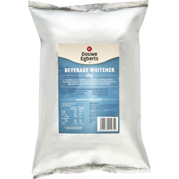 Douwe Egberts Beverage Whitener Vending Refills are specially designed for use in coffee vending machines. This creamer will add flavour to your favourite hot beverages, making it ideal for staff kitchens and meeting rooms.
