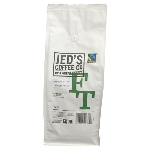 The Jed's Coffee Co. Fairtrade ground plunger coffee has a good body with well-balanced smoky flavours. It has a low acidity and a sweetness like sugar cane. This blend has flavour notes of chocolate, caramel, and smokiness. These coffee grounds are ideally used in plungers and filter machines.