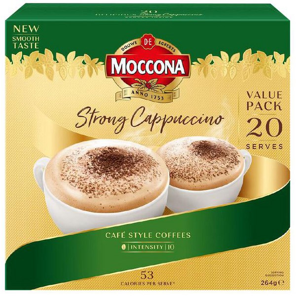Have an indulgent coffee experience with the Moccona Cafe classic strong cappuccino coffee sachets. A rich and creamy coffee with chocolate undertones with a bold taste and dark colour. Each pack contains 20 coffee sachets (264g pack).