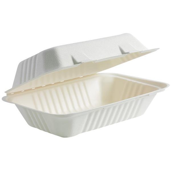 BioPak Takeaway Clamshell Compostable containers are made from high-quality materials including rapidly renewable sugarcane pulp. These are ideal for both hot or cold meals and suitable for takeaway meals and food storage as they are also microwave and refrigerator safe.