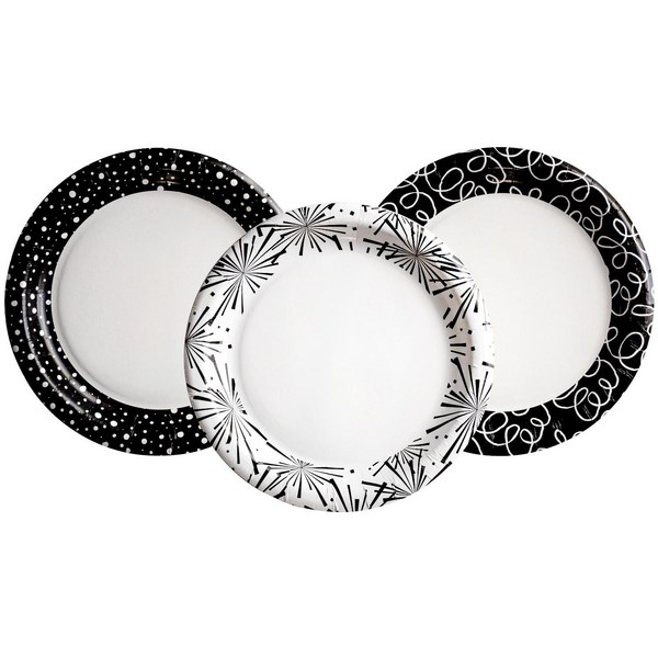 Lily Fiesta Paper Plates are attractive black and white paper plates that are ideal for BBQs, picnics and other functions. They measure 180mm in diameter and come in 3 assorted designs. These single-use paper plates are sturdy enough to use with cold or hot food, will add some fun to your next office function and can be thrown away after use, making clean up a breeze.