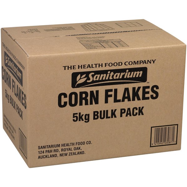 Get your favourite breakfast Sanitarium Cornflakes Cereal in bulk in this 5kg pack. Great tasting, golden toasted cornflakes are a delicious and perfect start to the day. This cereal is a welcome addition to any pantry, office kitchen or school. The Sanitarium Cornflakes cereal is a good source for Iron, Folate, Thiamine and Niacin which contribute to normal growth and development of children.