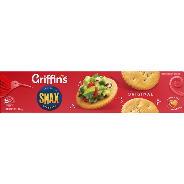 Griffin's Snax Original Crackers are a popular Kiwi favourite. A melt in your mouth cracker that will suit a variety of toppings. Ideal for everyday snacking, functions, office gatherings and picnics.