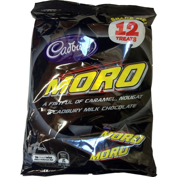 Cadbury Chocolate Moro Bars will give you the energy to go the distance. Nougat and caramel smothered in rich Cadbury milk chocolate all in bite sized bars. This treat bag of bit size bars is ideal for conferences , meeting rooms and staff kitchens. The are also ideal as a lunch box treat.