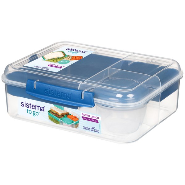 The Sistema Bento Lunch To Go Lunchbox is the perfect way to transport lunches and snacks to work, school or for a picnic in the park. The lunch box has multiple compartments to keep your food fresh and separate until ready to eat. It has an easy locking clip, a hinged lid and comes with a 150ml yoghurt pot with a seal-tight screw-top lid.