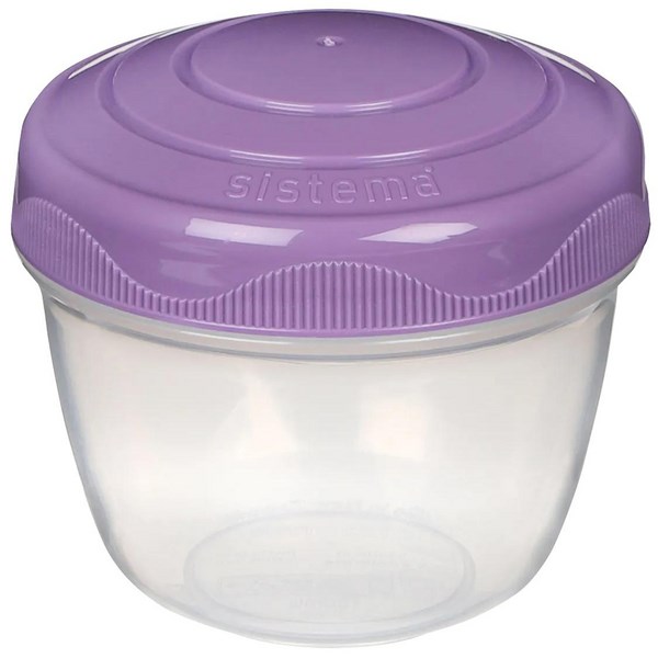 Use this Sistema Yoghurt To Go Container to take your yoghurt, fruit or snacks with you with on the go. The compact size makes it easy to slip into your bag, pocket or lunch box. It has a domed screw tight seal that will keep your snacks fresh.