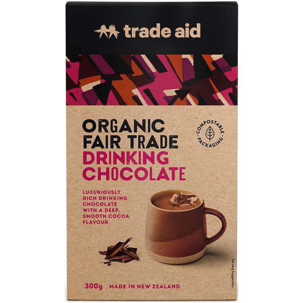Trade Aid's delicious 100% organic, fair trade drinking chocolate contains no nasty anti-caking agents. It is made from a mix of 30% Dominican Republic cocoa with sugar from Paraguay. Trade Aid Drinking Chocolate is a rich and chocolatey drink that is both Vegan and gluten free. Trade Aid is a member of the WFTO.