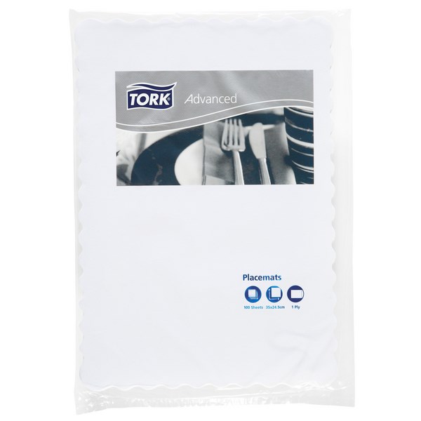 These Tork Placemats have a scalloped edge and will enhance presentation and decorative appeal to any serving tray. They have an embossed pattern which provides a non slip surface for tableware. These placemats are ideal for use in hospitals, hotels, nursing homes and care facilities.