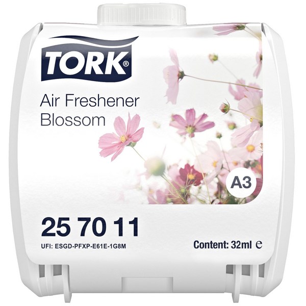 This Tork A3 Constant Air Freshener Blossom Refill is designed to be used in the Tork A3 Constant Air Freshener (sold separately). It provides even, continuous scent distribution and neutralises odours for up to 90 days.
