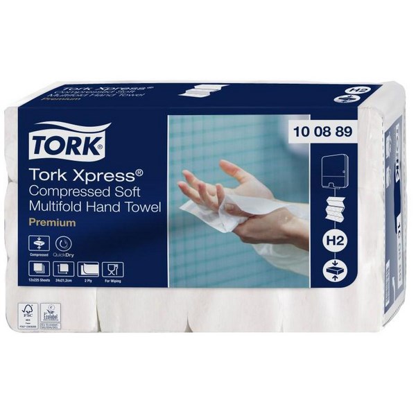 The Premium 2 ply is a high-quality embossed towel which provides softness, absorbency and strength for quick, effective hand drying. They are compatible with the Tork H2 System Dispensers.