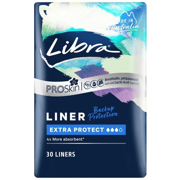 Libra Extra Protect Liners have absorbent cores to help keep you feeling fresh and dry. The liners have double all-round protective channels to help prevent bunching, breathable backing for air circulation and a soft-touch cotton-like cover with fun printed designs.
