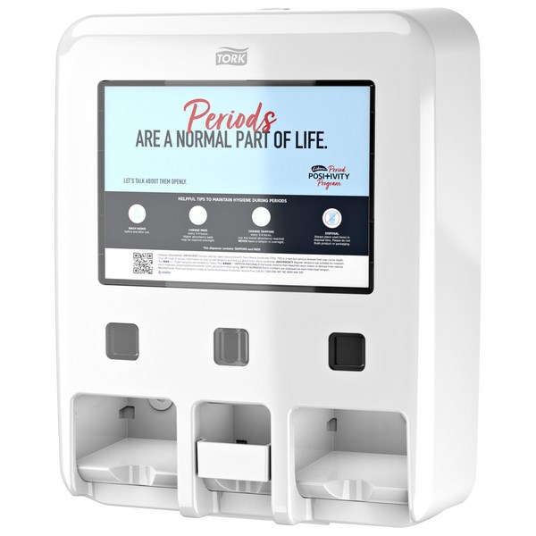 The Tork P2 Period Care Libra Pad And Tampon Dispenser has a compact and stylish design that will co-ordinate with other Tork bathroom accessories (sold separately). It can dispense single items for less waste.