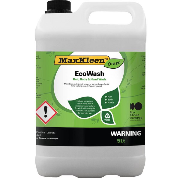 The MaxKleen Green EcoWash Hair & Body Wash is a ready-to-use hair, body and hand wash that is suitable for everyday use. It has a smooth, creamy texture and does not dry the scalp and skin. Apply a small amount to wet hair, body or hands, lather well and rinse off. Repeat if required. It comes in a 5 litre bottle that is perfect for refilling dispensers, pump bottles, and travel size bottles. Ideal for use in hotels, motels, hospitality, restaurants, cafes, commercial buildings, offices, hospitals, schools, kindergartens, and more.