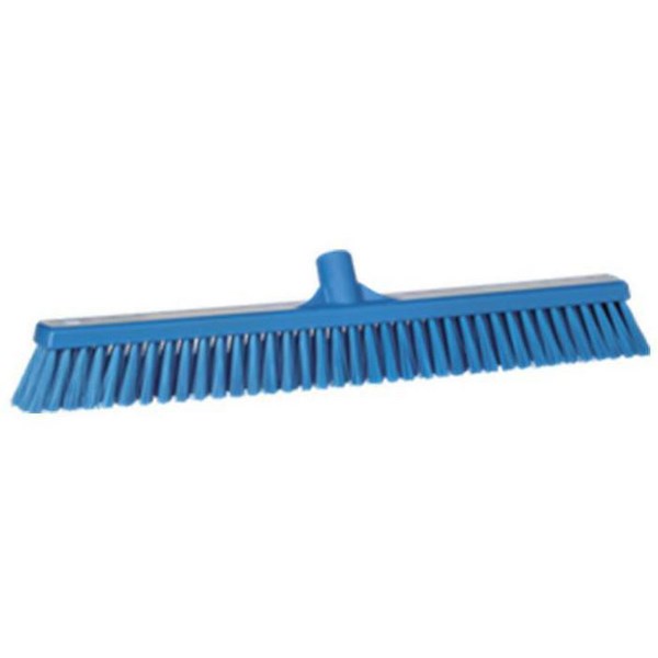 The Vikan Floor Broom features a dual-bristle design, making it ideal for cleaning in the food industry, kitchens, and restaurants. Its firm front bristles are effective at loosening stubborn dirt and heavier debris, while the softer rear bristles are specifically designed to collect finer particles, ensuring a thorough cleaning experience.