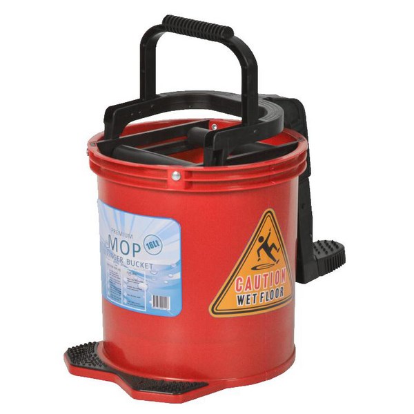 •Plastic wringer bucket holds a capacity of 16 litres and comes in the colour red