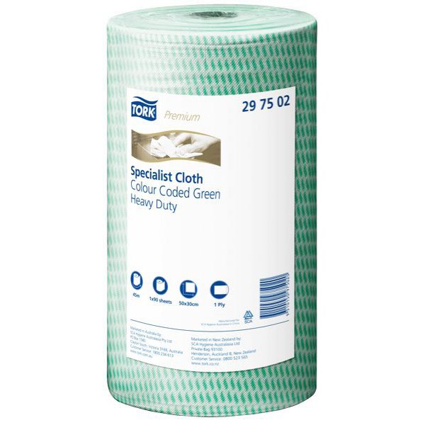 Tork Premium Heavy Duty Cloths are strong, absorbent and low-linting. These specialist cloths are ideal in both wet and dry applications and are HACCP endorsed to be safe for use in food contact areas. The cloths are colour coded with specific colours for specific tasks, thus helping reduce the risk of cross-contamination. HIgh performance and durability reduces the need to replace the cloths as frequently, minimising your consumption and reducing your costs.