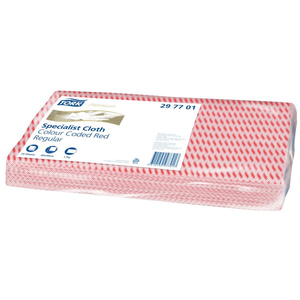 Tork Premium Colour Coded Cloths are versatile and are colour coded to help prevent cross contamination between different working areas. Cloths are HACCP accredited. Strong and durable, high performance in both wet and dry applications.