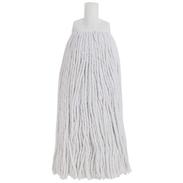 •A white mop head with durable yarn that offers a long life span