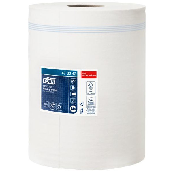 Strong and highly absorbent, the Tork M4 Reflex Paper Towel is 1 ply multipurpose wiping paper that is ideal for hand drying and other wiping tasks. This paper towel is great for cleaning glass, leaving behind no lint or streaks on surfaces. Suitable for use in the Tork Reflex centrefeed dispenser, it allows single sheet dispensing to help reduce consumption and minimise the risk of cross-contamination. Its SmartCore core removal makes refilling fast and easy.