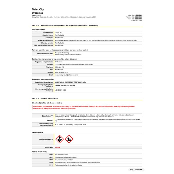 • Delivers high level of fragrance for effective odour control