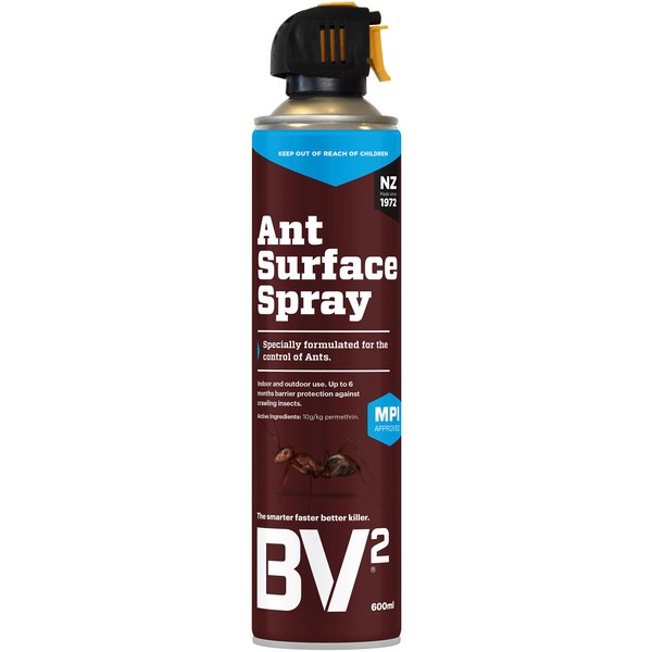 Get rid of annoying ants with the BV2 Ant Surface Spray, which is specially formulated for the control of ants. It comes in a 600ml aerosol spray can, allowing for quick and easy application. This ant spray is ideal for use at home, the office, workshop, food preparation areas, commercial kitchens and more.