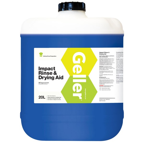 This Geller Impact Dishwasher Rinse Aid is designed to enhance drying speed and the finish quality of cutlery, glassware and dishes that are machine washed. It has been formulated for streak free drying and is highly concentrated for cost effective use. Specifically developed for use in restaurants, dining, accommodation and healthcare environments.