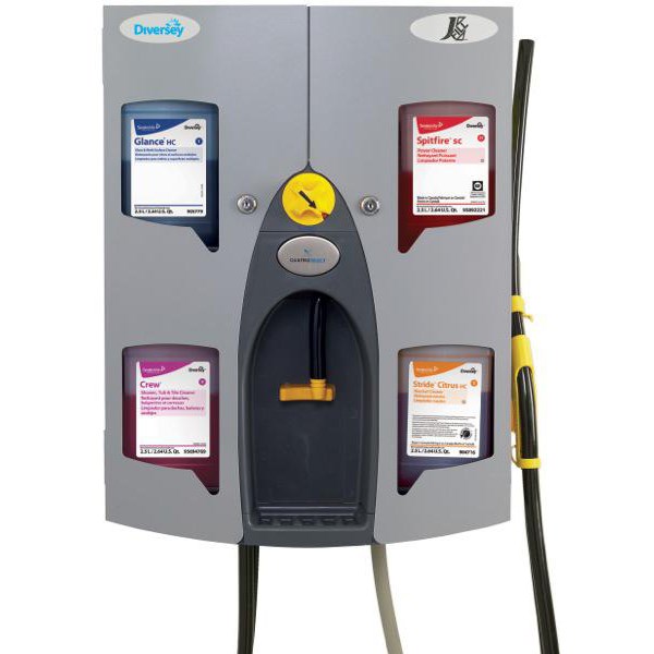 J-Fill Quattro Dispenser is a wall-mounted dispenser for bottle or bucket filling of J-Filling products range. The dispenser holds 4 products.