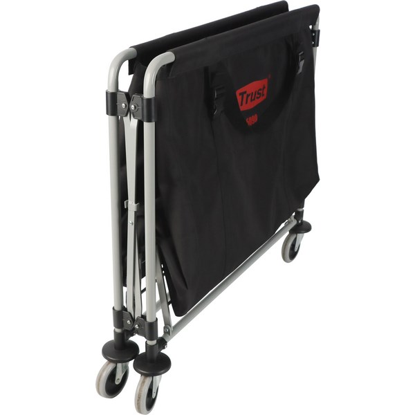The Trust Collapsible Linen Cart is a durable and versatile solution for storage and transportation needs. It features robust metal framing that ensures strength and stability for secure storage and easy mobility. The cart's adjustable shelves and foldable design make it suitable for use in compact spaces and easy to store when not in use. It also offers the functionality to be linked together using a hook feature, allowing for seamless connectivity between multiple carts. The cart is specifically designed to accommodate 100L Linen Bags (sold separately) and features dual compartments tailored for bag storage.