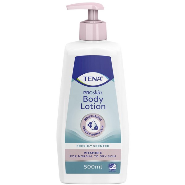 With its lightweight formula, the TENA ProSkin Continence Body Lotion is a gentle moisturiser that helps to maintain the skin's natural pH, making it ideal for fragile, aging skin. It contains caring oils and vitamin E that will leave the skin feeling soft, smooth and moisturised. This lotion absorbs quickly and can be used on the whole body. It comes in a handy 500ml pump bottle for easy application and is suitable for use on normal to dry skin.