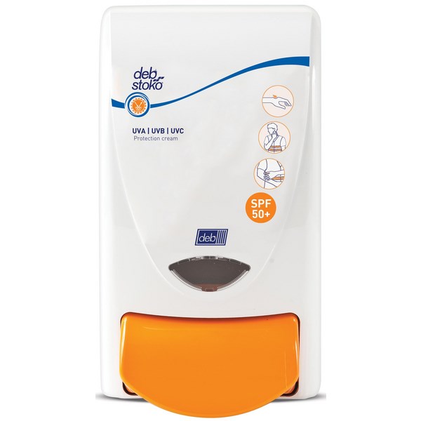 This Deb Stoko Sunscreen Dispenser is ideal for the quick application of sunscreen for ultimate sun safety. Designed for use with Stoko Sunscreen cartridges, the Sunscreen Dispenser has single push button operation to efficiently dispense sunscreen without the need for bottles and tubes. An efficient, no mess sunscreen solution. 1L capacity for high volume use. Dispenser can be easily positioned in high use areas. Ideal for use in construction, marine, leisure and light industrial industries.