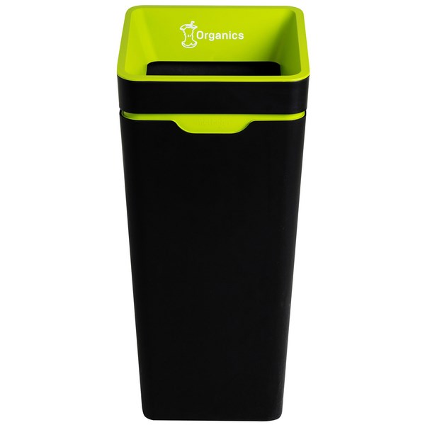 This 60L Green Method Organics Recycling Bin With Open Lid turns recycling into a stylish part of everyday life in the office or workplace. The aesthetically pleasing but functional recycling bin is designed to simplify the process of collecting organic waste for commercial composting. This bin can help with significantly reducing the amount of waste going to landfill, particularly with the advent of commercially compostable packaging. You can also dispose of other bio-materials such as most tissues, napkins, paper towels and tea bags in an organics collection. This bin features a unique patented bag retainer system to lock liners in place to hide them from view. The top is open to enable easy disposal and is ideal for high-flow environments with daily waste collections although a closed lid is recommended as organics is prone to odours and attracting fruit flies. You can also create a recycling station by adding additional Method bins, which can be locked into place or side-by-side with a connector.