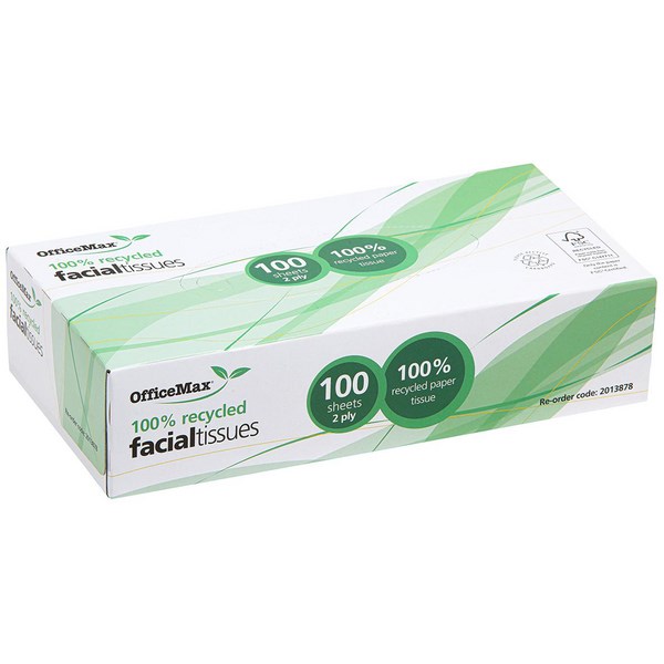 These OfficeMax 100% Recycled Eco Facial Tissues are an excellent, economic choice for the home or office. Effective tissues providing strength, softness and comfort. The OfficeMax Eco Facial Tissues are made from 100% recycled tissue and are ideal to keep on hand for use in kitchens, rest rooms, work spaces and lunch rooms.