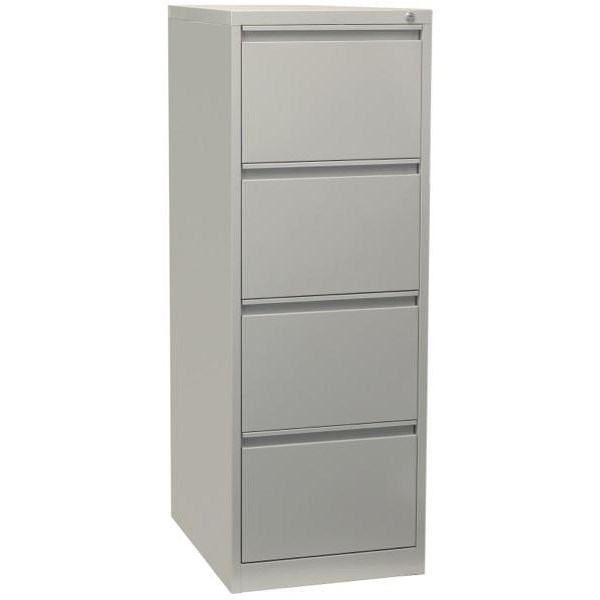 This Firstline Filing Cabinet is ideal for storing all your important documents and files. It has a sturdy all-steel construction and a durable oven-baked powder coated finish in a Silver Grey colour. It is lockable and has a secure series locking system, ensuring all documents are secure and privacy is maintained. It has 4 pull out storage drawers which feature high quality ball bearing runners ensuring smooth and easy operation. Each drawer can accommodate a uniformly distributed load of 25kg.