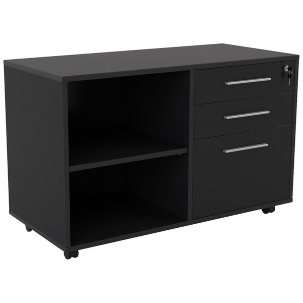 This stylish and sturdy Cubit Mobile Caddy offers 2 standard drawers, 1 hanging file drawer and an open cupboard with 2 cubbies for various storage purposes. The drawers are lockable for optimised safety and offer left-hand or right-hand drawer configuration, allowing you to assemble it to suit your needs. The heavy-duty castors mean you can move this unit around empty or filled with no hassles and measures overall 993x460x640mm (wxdxh).